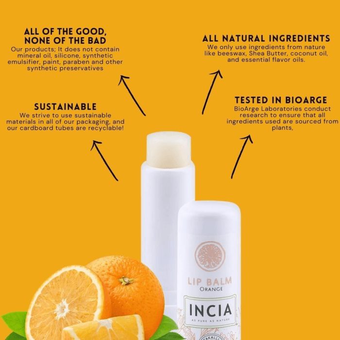 INCIA Kids Lip Balm Orange The INCIA Kids Lip Balm is safe for children. Its natural ingredients provide protection against environmental factors. Thanks to the natural ingredients, it is 100% edible. The product contains no artificial fragrances or colorants. Product Benefits Protects children’s lips 100% Edible Contains no artificial fragrances or colorants Keeps lips glossy and radiant all day Suitable for use in hot/cold weather or excessive sunlight This lip balm provides the care needed for dry, chapped lips. Lips are susceptible to dehydration and cracking because they lack oil-secreting sebaceous glands. As a result, lips quickly lose moisture and remain unprotected against environmental factors. Give your child optimal protection by hydrating their lips with this lip balm during cold or warm weather and exposure to the sun.