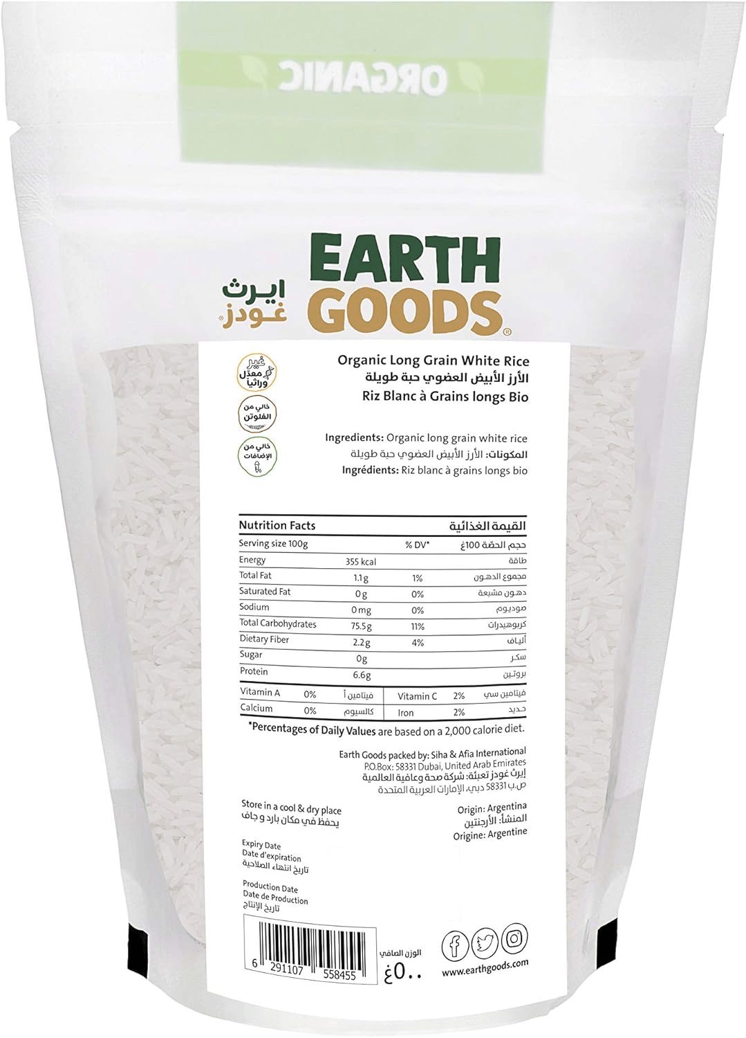 Earth Goods’ premium organic, Argentinian long-grain white rice provides a healthy dose of carbs, vitamins, minerals with almost no fat.