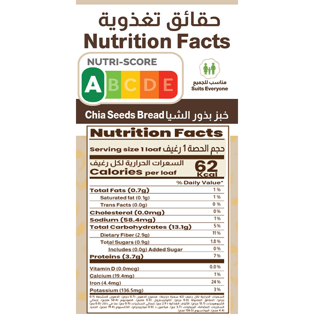 Chia Seeds, Wheat flour, Wheat bran, natural yeast, a little of sea salt