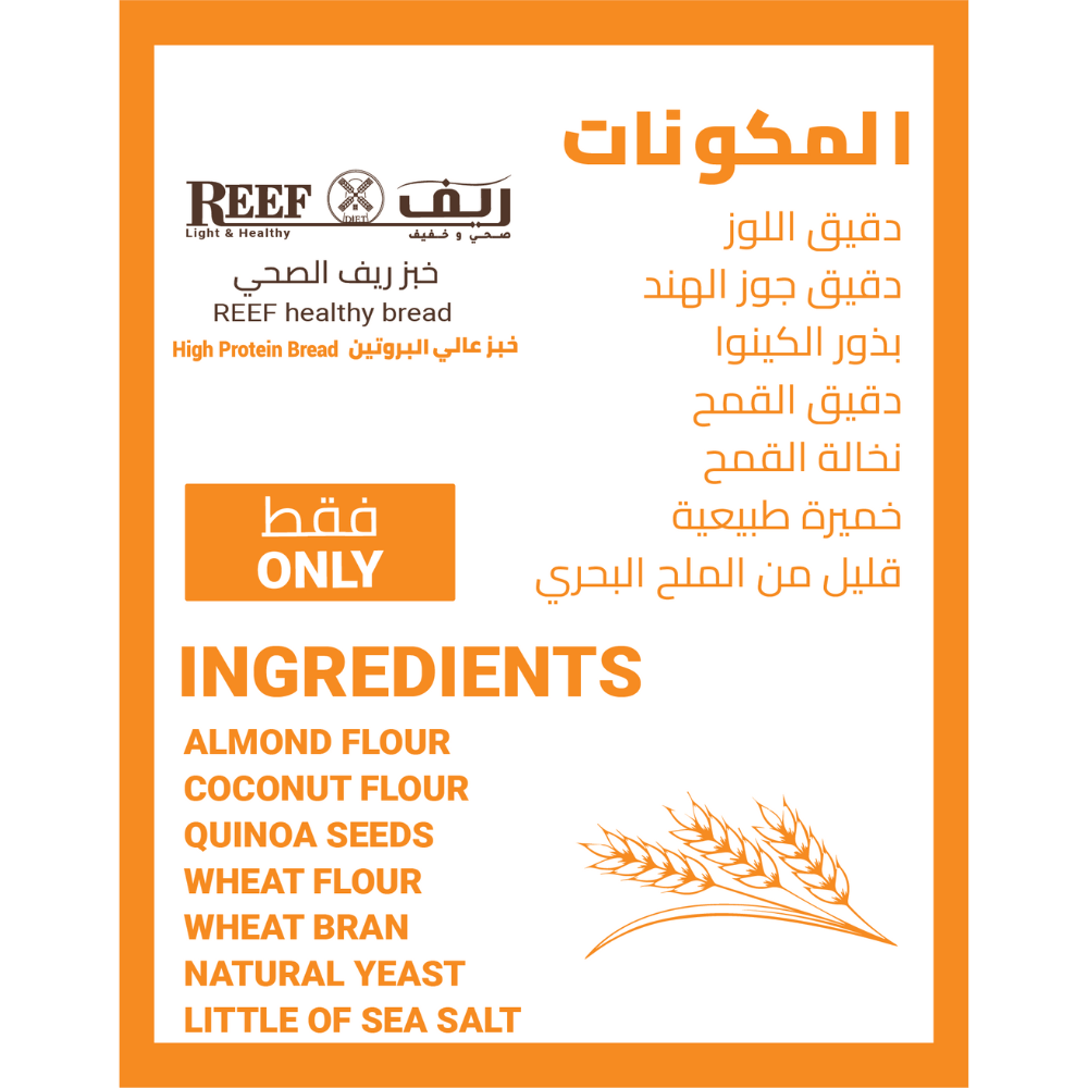 Almond Flour, Quinoa Seeds, Coconut Flour, Wheat flour, Wheat bran Natural yeast, a little of sea salt.