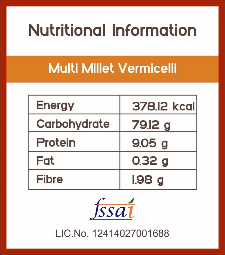Our Millet vermicelli have No Maida (Wheat Flour), No Artificial Flavour, No Preservatives, No added MSG. They are also not Oil Fried